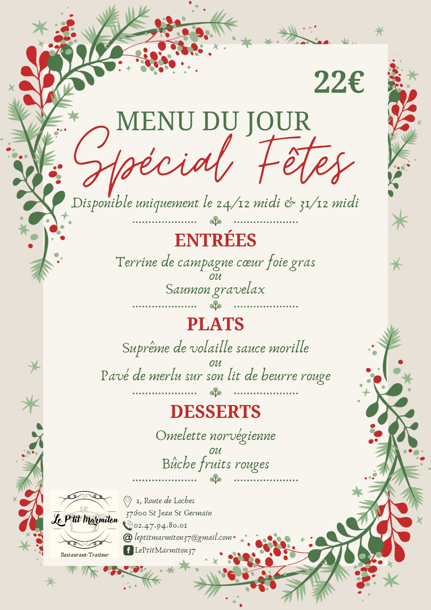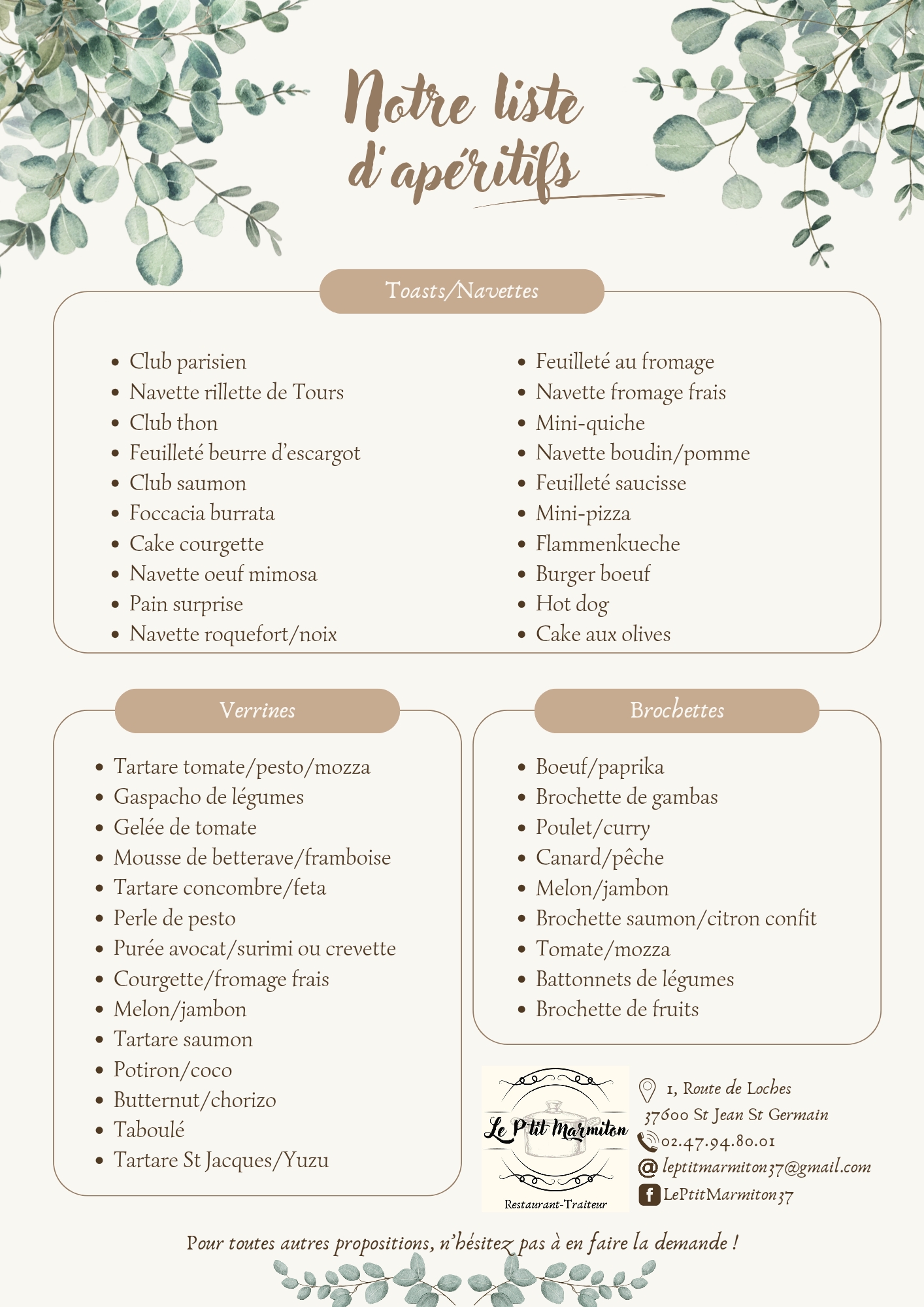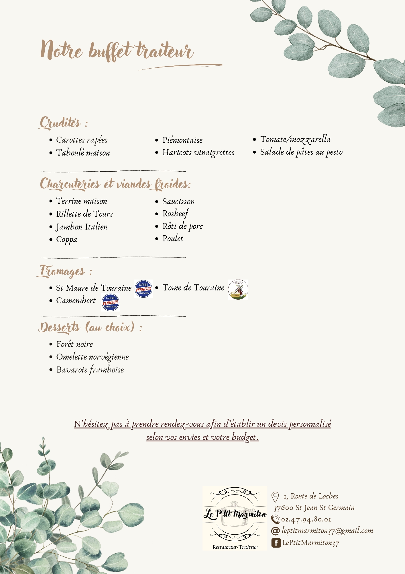 Le P'tit Marmiton est là pour vous servir ! Situé à 35 min du Zoo de Beauval et à 15 min de la Cité Royale de Loches, c'est le lieu idéal pour une pause gourmande !!